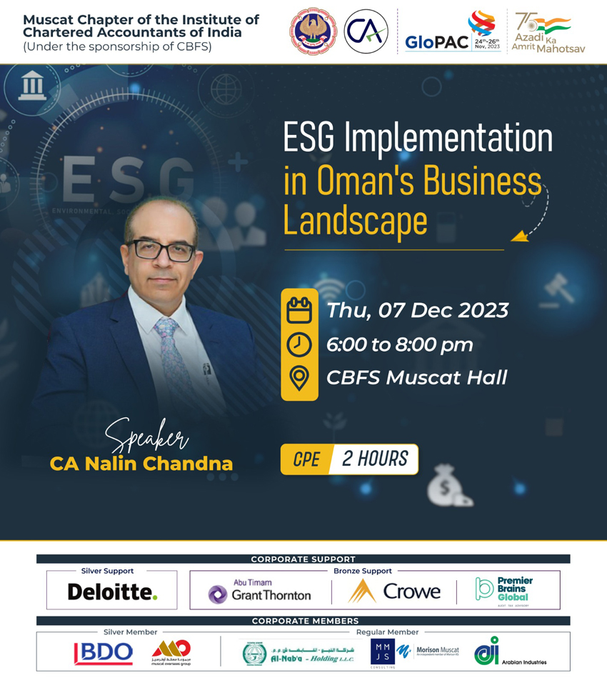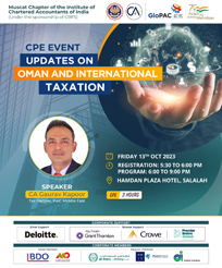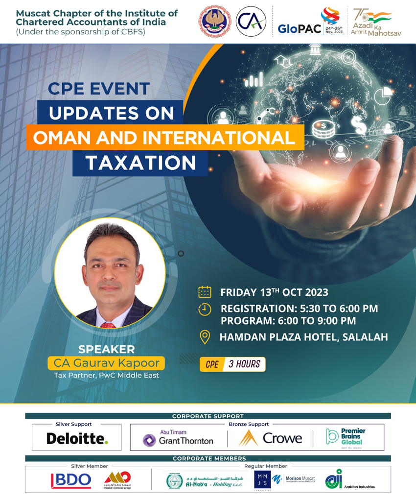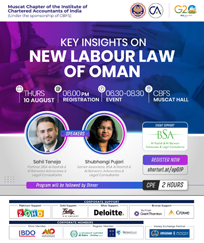 Seminar on Indian Union Budget 2025-26 and NRI Taxation, Celebration of Best Chapter Award, Monday, 16-02-2026 06 : 00 PM, Venue : Mercure Hotel Muscat, Faculty : CA Aniket Talati, Past President of ICAI, Fees : Free For paid members, CPE Hours : 03:00