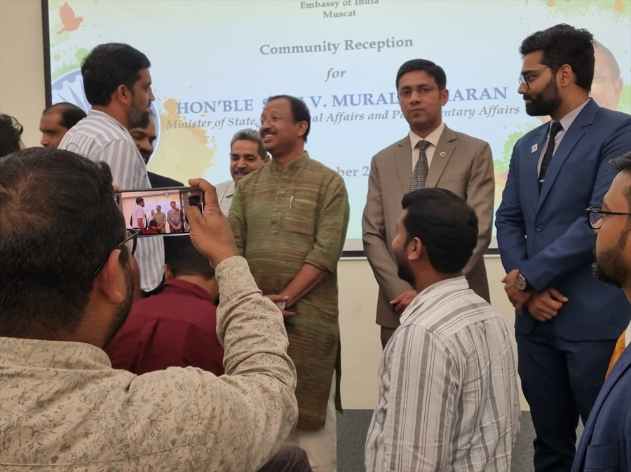 MC members greeting Honorable Shri V. Muraleedharan in Oman, Minister of state for External Affairs and Parliamentary Affairs
