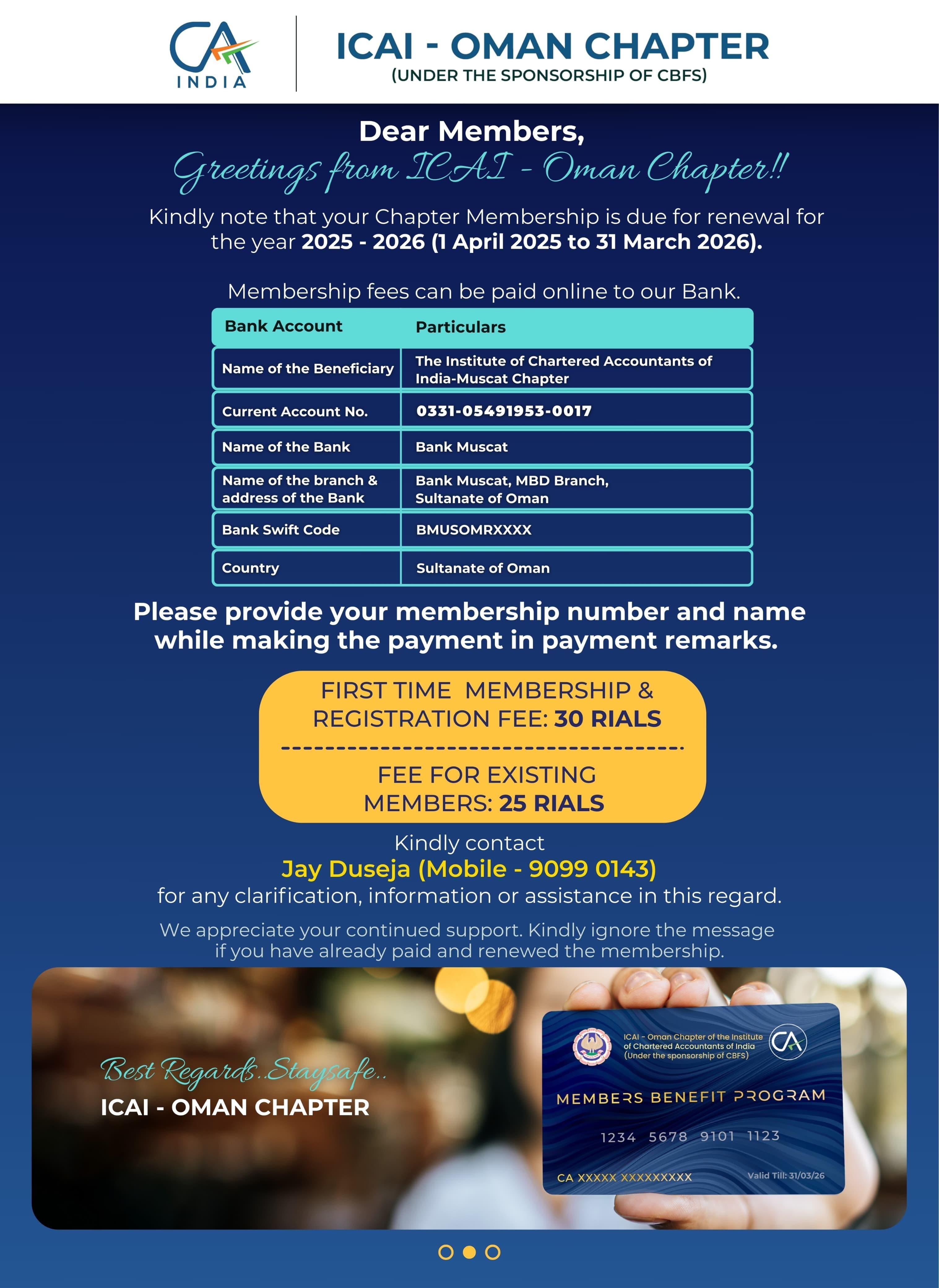 c. The new member will only be able to login to the ICAI - OMAN CHAPTER website once he has paid the membership fees.