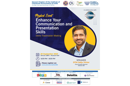 Enhance Your Communication and Presentation Skills (Toastmasters Event)- 20.09.2022