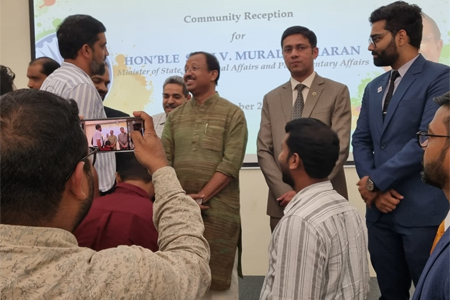 MC members greeting Honorable Shri V. Muraleedharan in Oman, Minister of state for External Affairs and Parliamentary Affairs